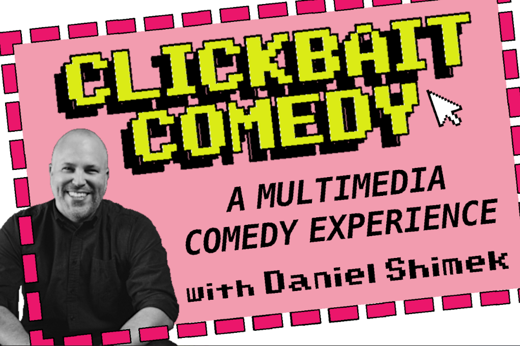 In Clickbait Comedy, comedian Daniel Shimek takes the stage armed with a projector and a deck full of hilarity. Smart, fast, and interactive, this show is part stand-up, part guessing game, part fever-dream PowerPoint.