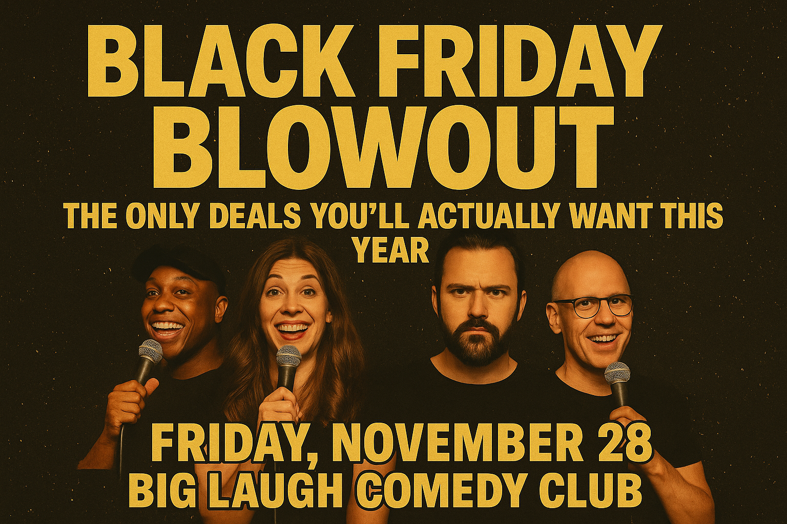 This is not your average comedy night, it’s a full-blown Black Friday escape plan. We’re stacking the lineup with national headliners, local killers, and surprise drop-ins who’ve been told: go hard, or go home.