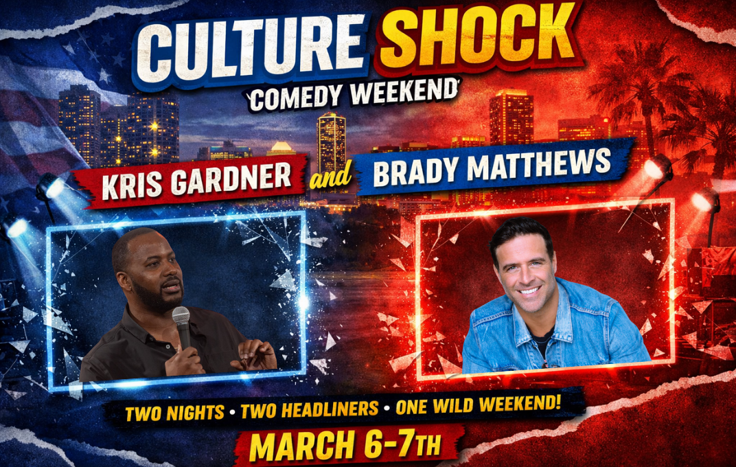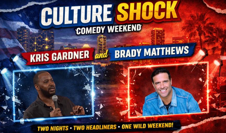 Culture Shock Comedy Weekend brings together Kris Gardner and Brady Matthews for four co-headlining shows that hit from every angle of life. Marriage. Kids. Culture. Relationships. Race. Baby mama drama. Real life. No holding back.